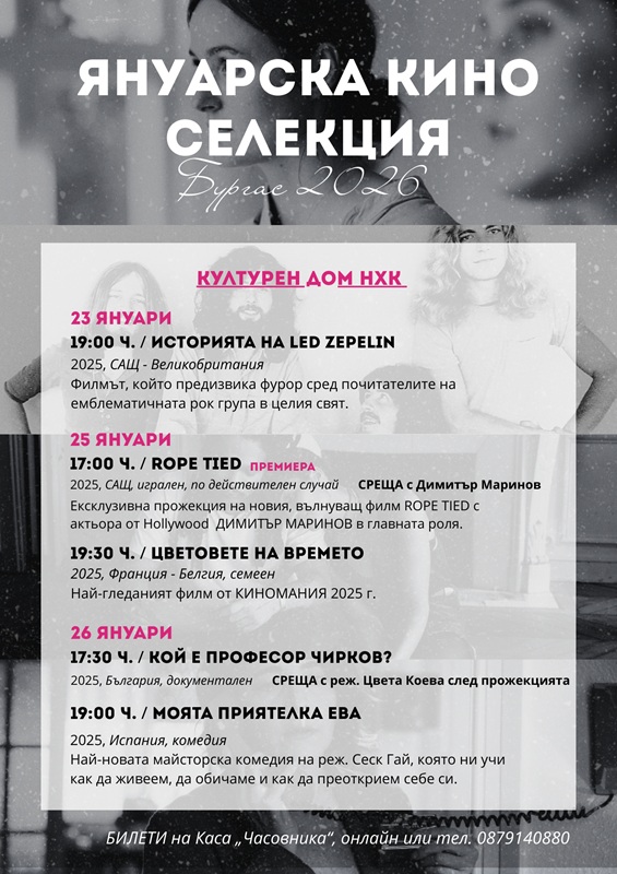 Бургас има особена връзка с киното – град, в който морето е достоен домакин на красивите истории. През януари бургазлии могат да се насладят на специално подбрана филмова селекция, която превръща зимните вечери в повод за срещи, истории и голямо кино.