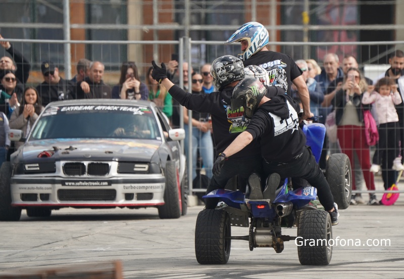 Веднага след това момчетата от Extreme Attack вдигнаха адреналина със зрелищно стънт шоу. В него участваха мотори, АТВ-та и автомобили, които сякаш гравитацията не ги ловеше – голяма част от времето возилата се докосваха до земята само на една или на две гуми, а водачите им стояха изправени върху тях.