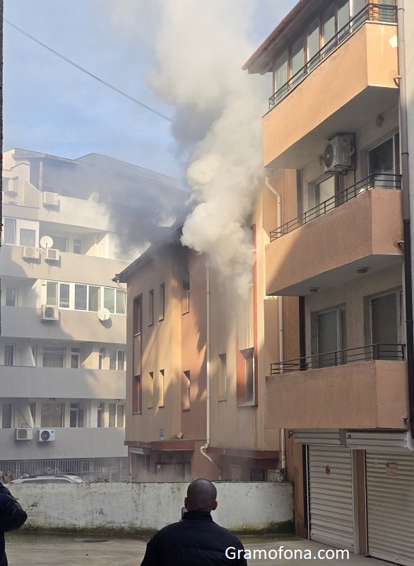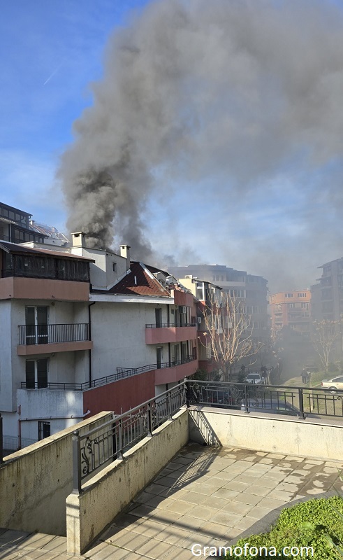 На място са пристигнали две пожарни, полиция и линейка. Заради бързото разрастване на огъня се е наложило пожарникари да свалят хората със стълби, информират още очевидци.
