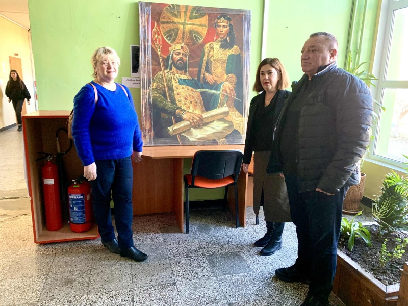 В рамките на инициативата представители на двата клуба – Николай Николов от Ротари Бургас – Приморие и Цанка Николова, учител по биология и здравно образование в АЕГ „Гео Милев“ и член на Инър Уийл Бургас – направиха специално дарение за гимназията: картина с образите на цар Борис I Покръстител и неговата съпруга, която вече заема достойно място в училищната среда като символ на историческата памет и духовните ценности.
