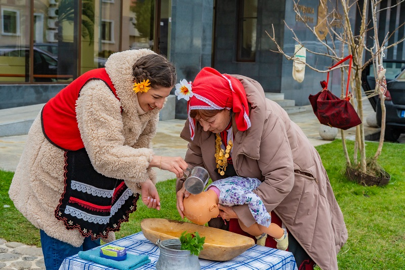 В рамките на възстановката беше представен обредът „обредно поливане“, съпроводен с традиционни благословии за здраве, дълголетие и благополучие. Ритуалът символизира почитта към възрастните жени и акушерките, които в миналото са оказвали помощ на родилките и е част от богатото българско обредно наследство.