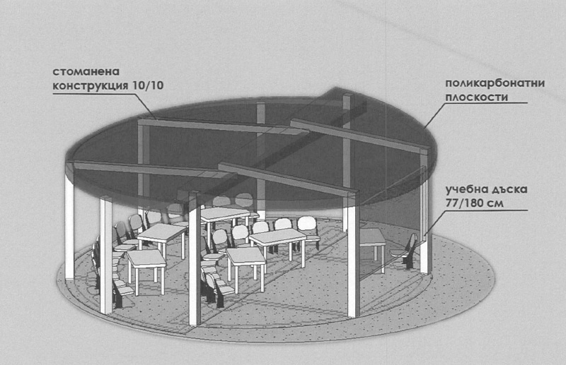 Проектът предвижда изграждане в свободното дворно пространство на две открити класни стаи за провеждане на учебни занятия на по един клас от 26 ученици. Всяка от стаите следва да бъде оборудвана с 28 седящи места за учащи с 12 маси, разпределени равномерно. За преподавателя е предвидена също маса и стол. Всички елементи на обзавеждането ще са трайно прикрепени за бетоновата настилка.