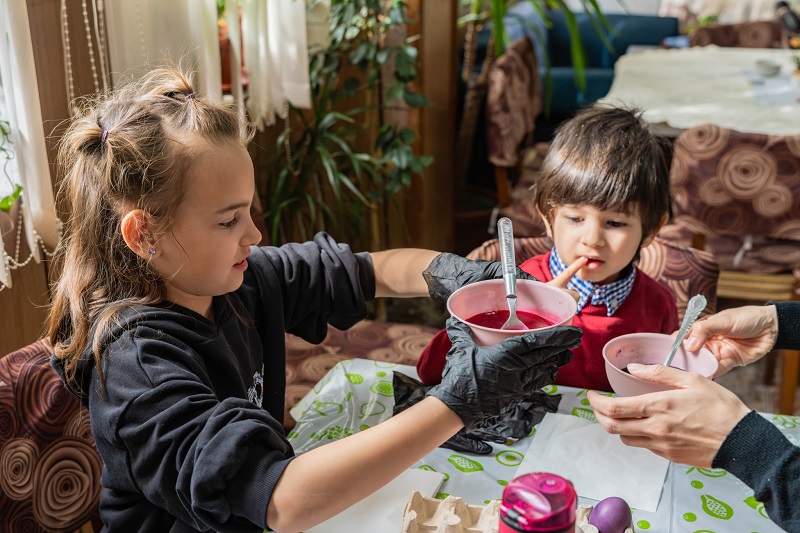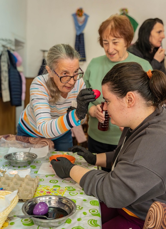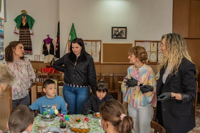Жените от пенсионерски клуб „Тракия“ в Царево и децата – потребители към Комплекса за социални услуги в морския град се събраха заедно, за да боядисат великденските яйца.