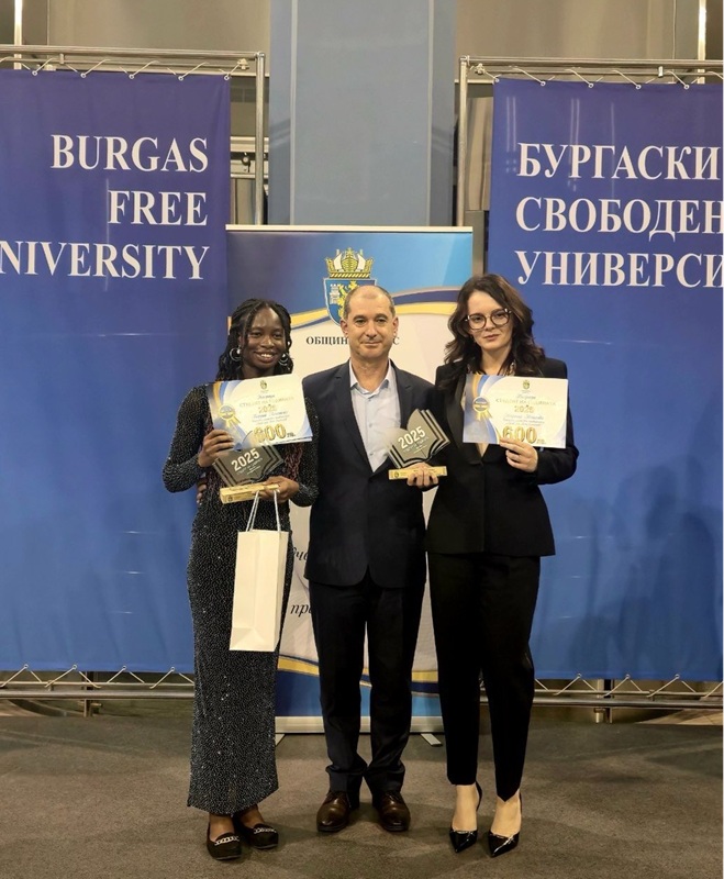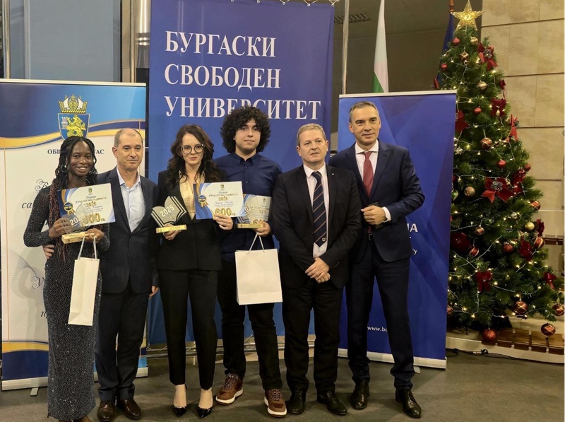 Това са Марина Петкова, която е част от Асоциацията на студентите-медици в България-Бургас и Гаудия Агханену, която е сред чуждестранните студенти, обучаващи се на английски език в университета. Наградите им бяха връчени лично от кмета Димитър Николов. Само трима студенти от всички висши училища, представени в Бургас, имаха честта да бъдат удостоени с престижното отличие и двама от тях са именно от Бургаския държавен университет.