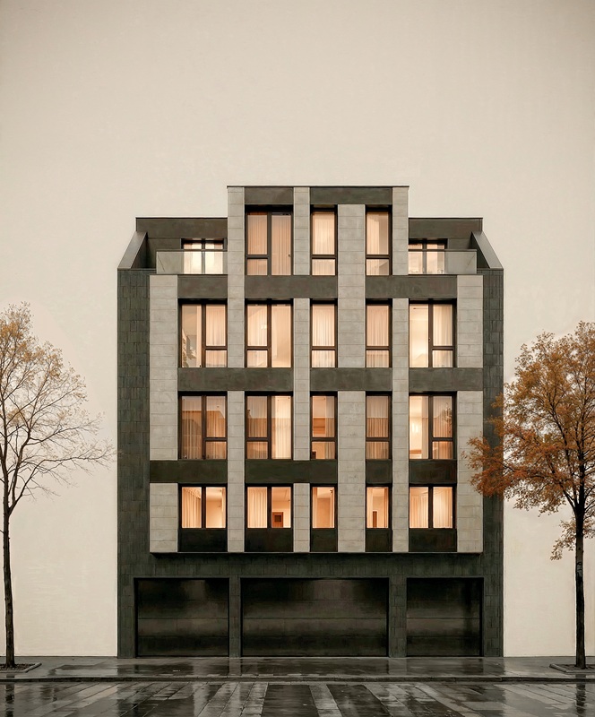 апартамента, 2 гаража и 8 паркоместа върху РЗП 1390 кв. м. Отличава се с