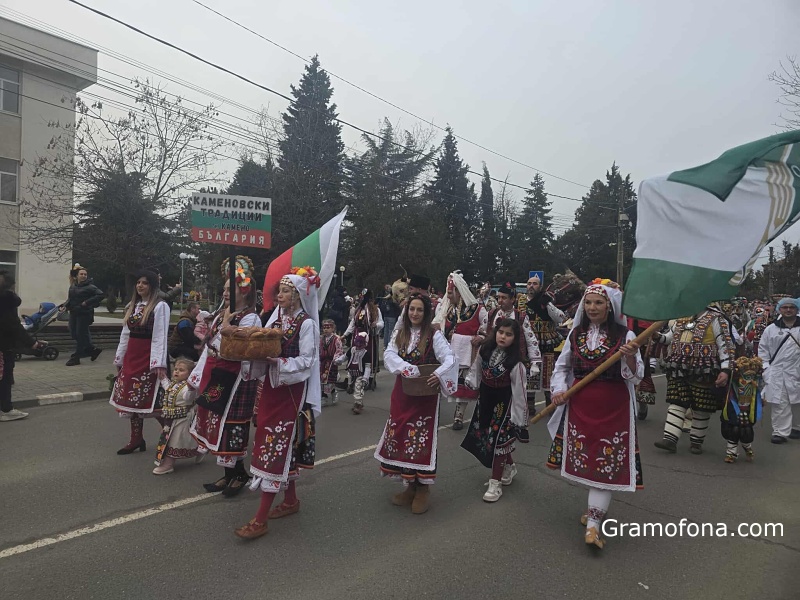 Голямо кукерско шествие се провежда в Камено, съобщи репортер на Gramofona.com. От вчера маскираните са започнали да обикалят къщите, а днес е кулминацията на тържествата на площада пред сградата на Община Камено.