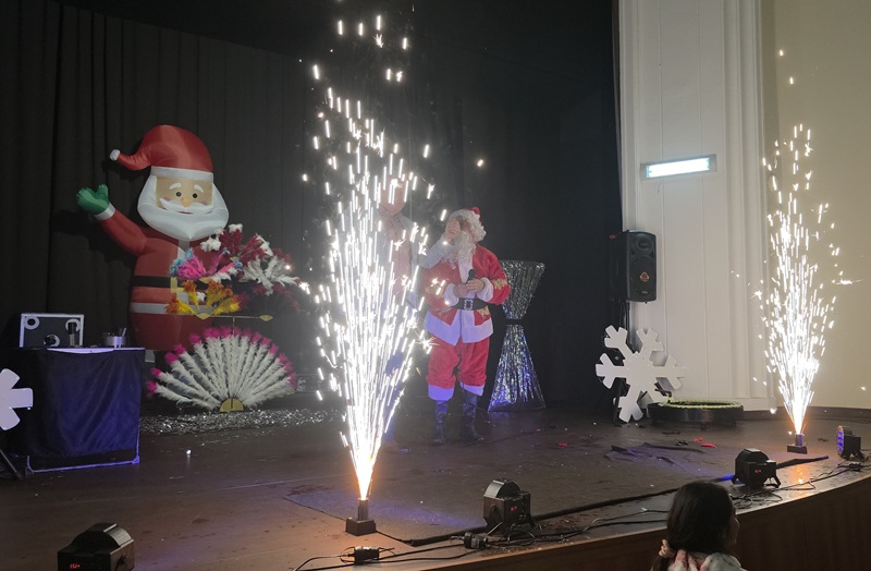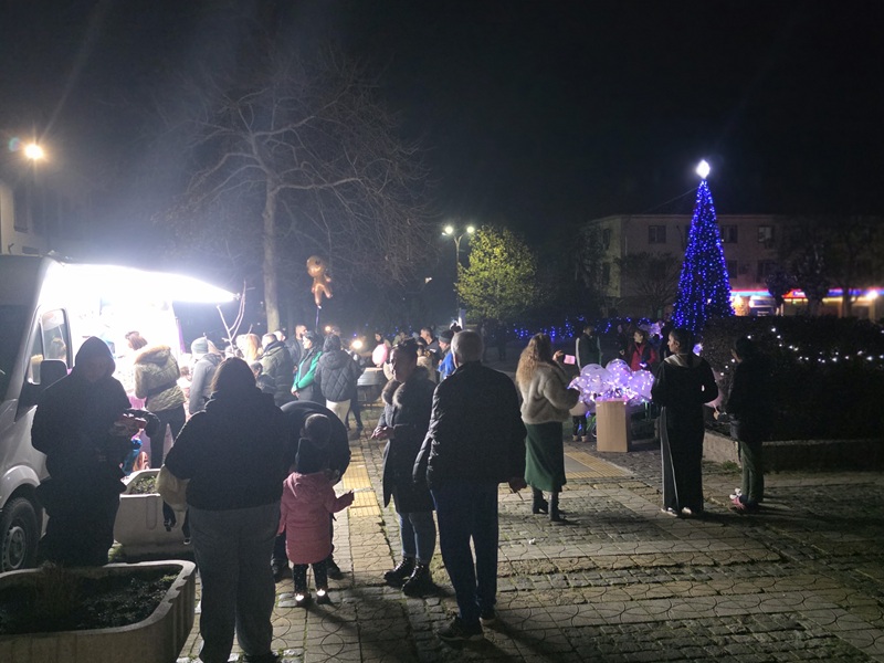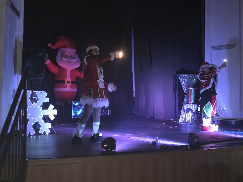 Запалването на светлините се проведе в 18:30 часа, а час преди това малчуганите изгледаха спектакъла “Работилницата на Дядо Коледа”. Децата станаха свидетели на фокуси, магии, лазерно представление. Изненада за най-малките бе появата на Добрия старец, който пристигна на колело.
