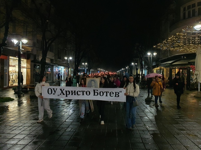 Над 600 ученици от 21 бургаски училища и 250 учители от 35 детски градини се включиха в организираното от Община Бургас мащабно факелно шествие в памет на Васил Левски, което се превърна в кулминация на събитията, отбелязващи 153 години от гибелта на Апостола на свободата.