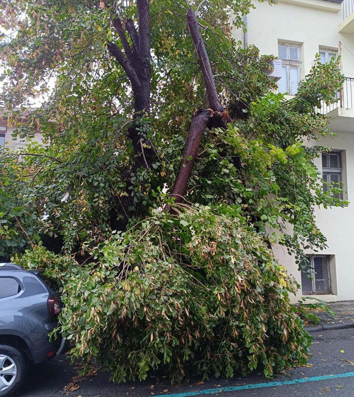 За паднали дървета около Морската градина в Бургас съобщават читатели на Грамофона нюз. Те изпратиха снимки на огромно дърво, което бурният вятър е прекършил на ул. “Войнишка”.