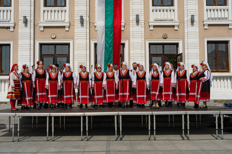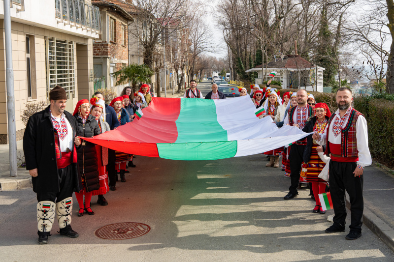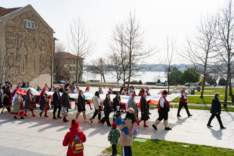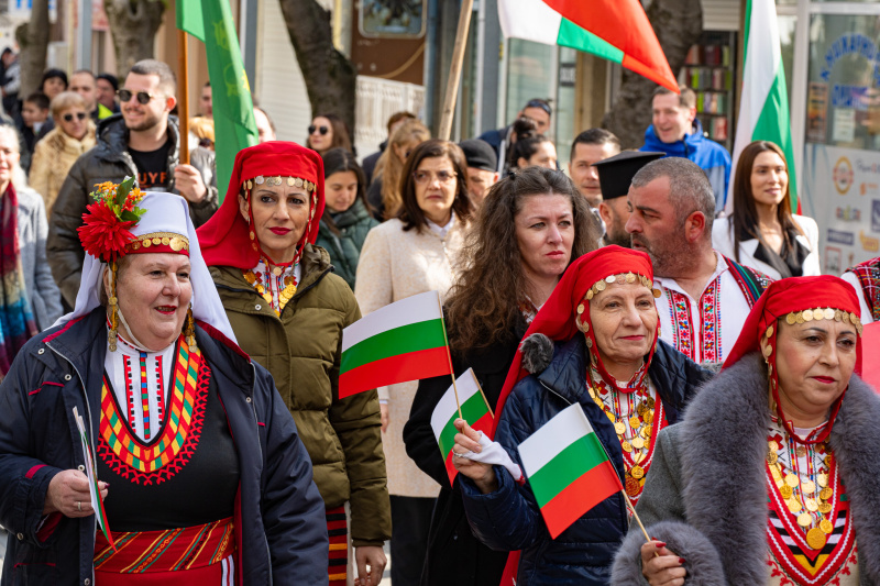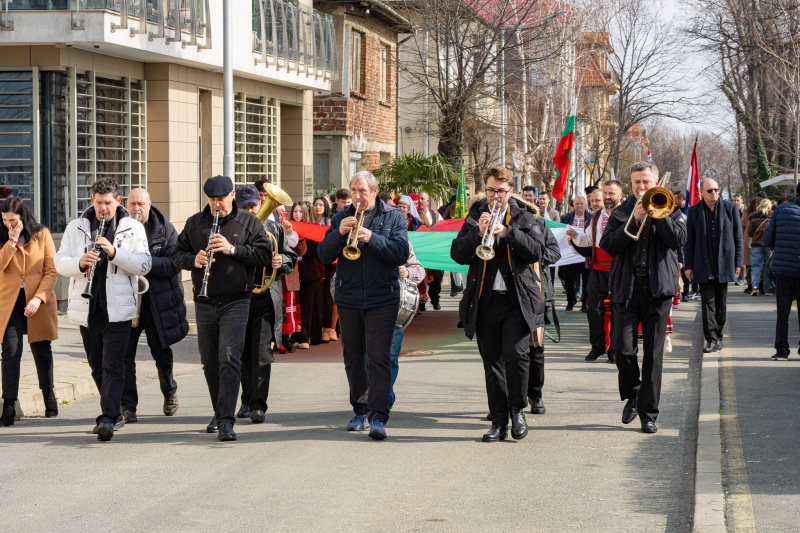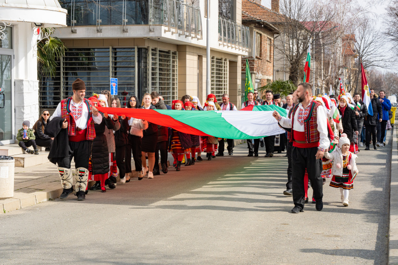 След поднасянето на венците тържеството продължи с празнично шествие, водено от огромен български трибагреник, което премина до централния площад, където продължи празничната програма.