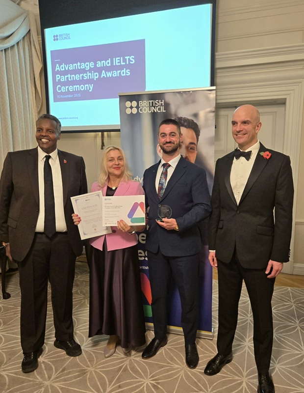 Частно училище по английски език „Британски Културен Център - Бургас“ получи своето 14 поредно най-високо отличие от Университета Кеймбридж и Британски Съвет – България. Наградата бе връчена на 10 ноември на официален прием в резиденцията на британския посланик в София. На престижната церемония Златина Петкова-Хейгъл и Петко Петков бяха лично наградени от Негово Превъзходителство Н. Копси, посланикът на Обединено Кралство Великобритания и Абди Хасан, директор на Британски Съвет за България и Румъния.