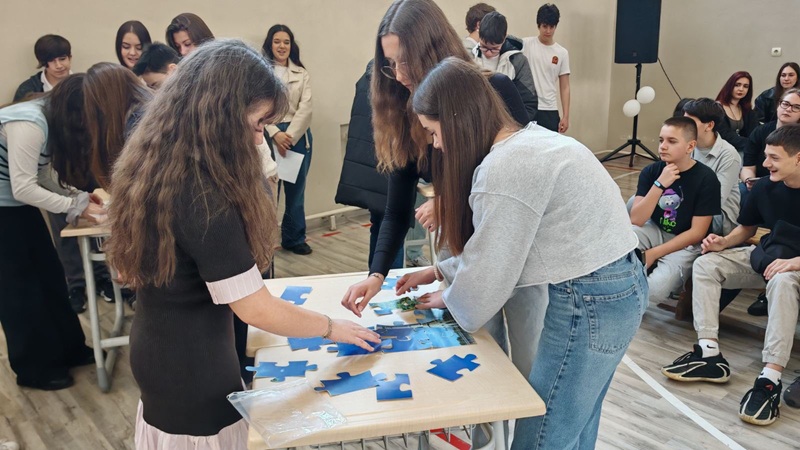 Езиковото междучасие се превърна в истинска сцена на знания и въображение. Учениците се впуснаха в разнообразни предизвикателства на английски и руски език – подреждаха пъзели със знакови забележителности, разпознаваха световни обекти, изразяваха се чрез езикова пантомима, създаваха думи от срички и се потапяха в динамична онлайн игра. Всяка задача бе не просто изпитание, а възможност за сътрудничество, бърза мисъл и увереност в общуването.