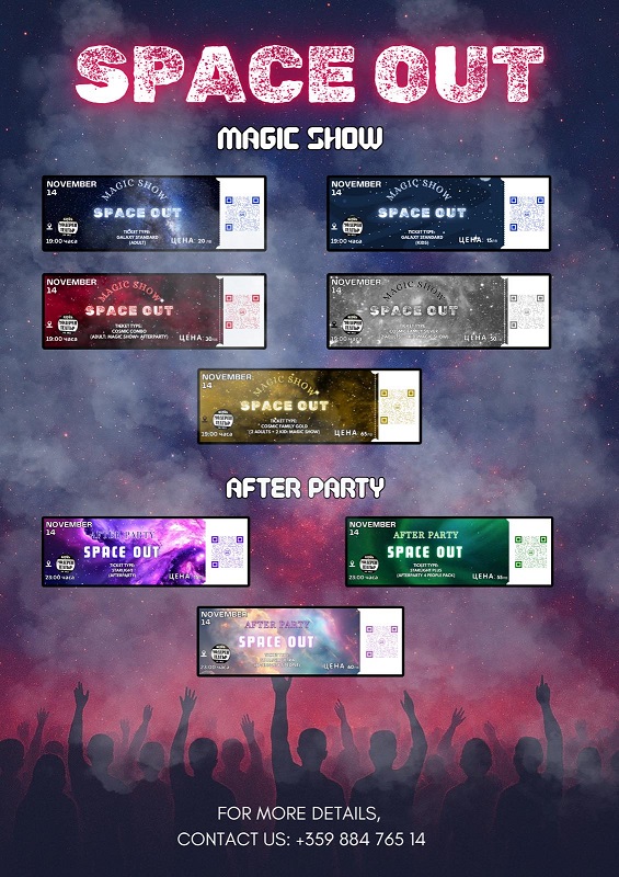 След края на шоуто вечерта продължава с „SPACE OUT Afterparty“.