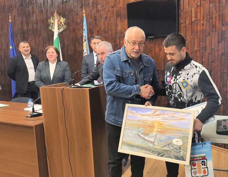 Празничната атмосфера бе допълнена и от културен жест със силно символично значение. Отново роденият в балканската община Али Муталибов направи дарение от три картини, предназначени за кмета Ахмед Мехмед, председателя на Общинския съвет Нуртен Османова, както и за залата по борба – с художествен образ на Ефраим Камберов, един от заслужилите борци на България и емблематична фигура за българския спорт.