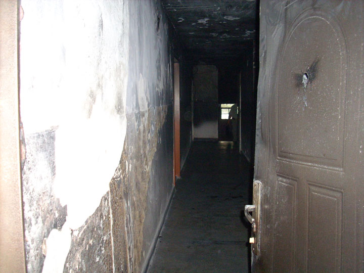 Огънят е успял да унищожи напълно входната врата на апартамента. Целият първи етаж на блок №15 в „Лазур” е опушен. На места от високата температура е паднала мазилката, а още от входа се усеща задушливата миризма на изгоряла гума. От полицията съобщиха за Gramofona.com, че вече има задържан за инцидента.