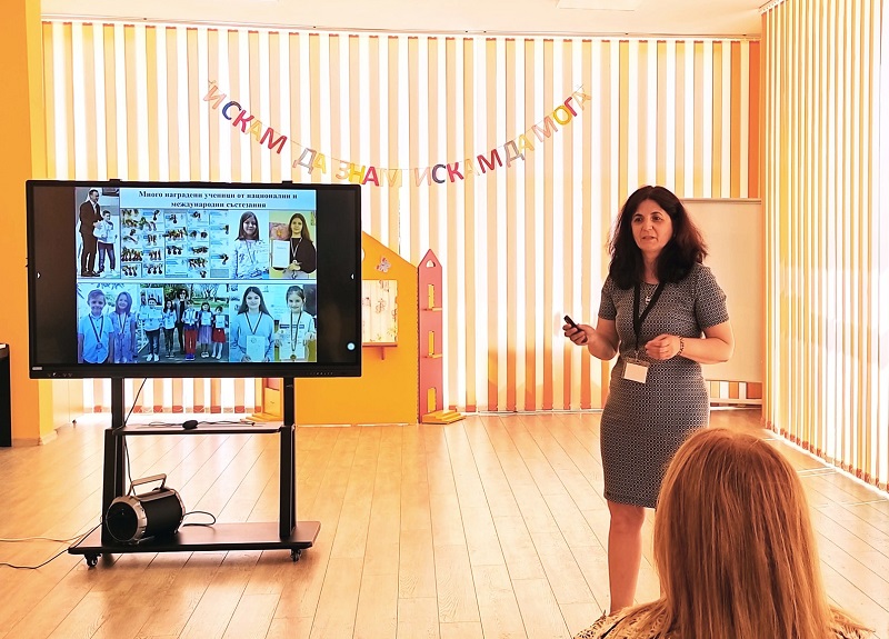Учениците влязоха в ролята на екскурзоводи от фирма "Морски гларуси" и включиха гостите във виртуална разходка из Бургас. Приветстваха ги на три езика: български, английски и руски. Използваха знанията си по математика и изчислиха разстоянието, а според скоростта – времето, което ще е необходимо на гостите ни да пътуват от градовете Кърджали, Сливен и Момчиловци до Бургас.