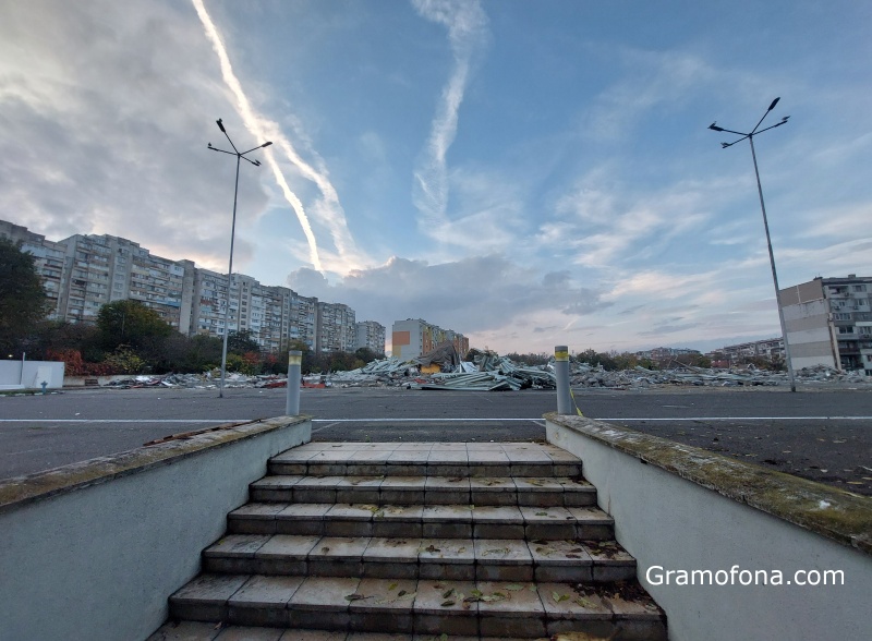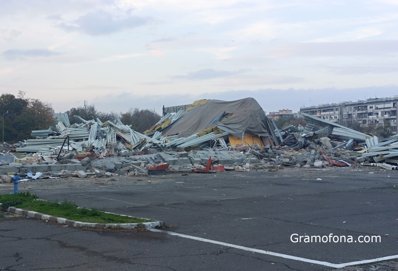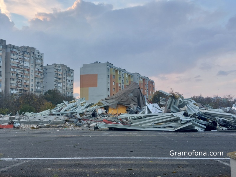 Търговски център „Изгрев“ в едноименния бургаски комплекс вече е в историята – той е разрушен, установи проверка на Gramofona.com.