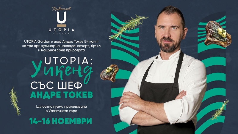 Есенната програма в Utopia Forest продължава с още вълнуващи събития. Само няколко седмици след Бирения Фест, от 14.11 до 16.11, в Utopia Forest ще гостува шеф Андре Токев с тематичен уикенд, включващ специално създадено меню, гурме брънч и лична среща с един от най-обичаните кулинари в България.