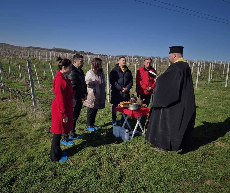 През изминалата година лозовият масив е допълнен с 10 000 бр. млади лозички. След поливането на лозите с вино последва благословия за здраве и плодородна година!