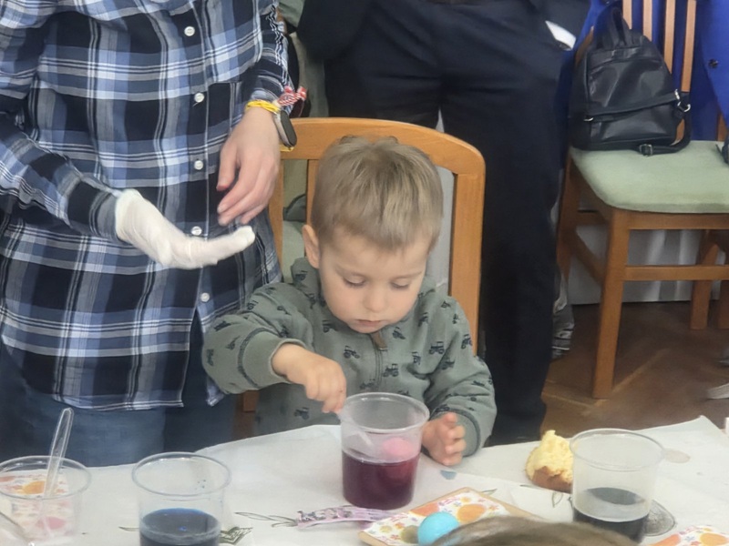 Децата от Неделното училище проявиха нескрит интерес към великденските обичаи и тяхната символика, като с радост и желание боядисаха великденските яйца, пробваха различни техники, а импровизираната творческа работилница искрено ги забавляваше.