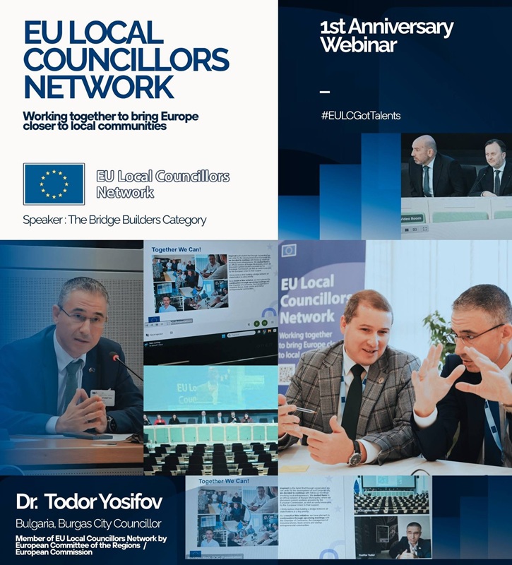 Първият в историята си симпозиум, посветен на ролята на регионалната власт и отбелязващ юбилея от създаването на Мрежата на местните съветници по въпросите на ЕС, се проведе през изминалата седмица и беше организиран от EULC мрежата в Брюксел на European Committee of the Regions / European Commission. В пилотното му издание д-р Тодор Йосифов беше поканен за говорител от организаторите след селекция на обществената активност от над 3000 членове на EULC мрежата и откри с представяне на дейността си първият панел The Bridge Builders.