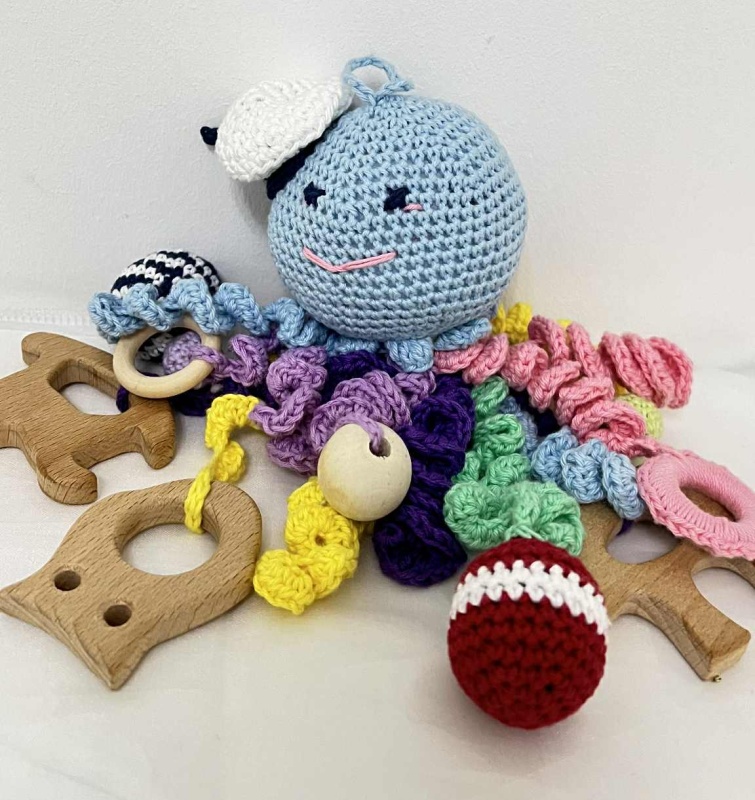 Дървото, което ползвам за бебешките играчки, е морско дърво, натурално и обработено без химикали. И тук е най-интересната част. Бурканите, чашите и кутиите за опаковка са рециклирани. Оцветявам, украсявам и им давам втори живот. Децата ми ме учат на начини да съхраним планетата и съм им безкрайно благодарна за това. Те ми събират бурканчета от детски храни и други, а кутиите и кашоните ги нося от работа. Не знам дали знаете, но операционните зали са третия по големина замърсител на планетата. С всяка рециклирана кутия си мисля, че един ден може и да излезем от челната тройка.