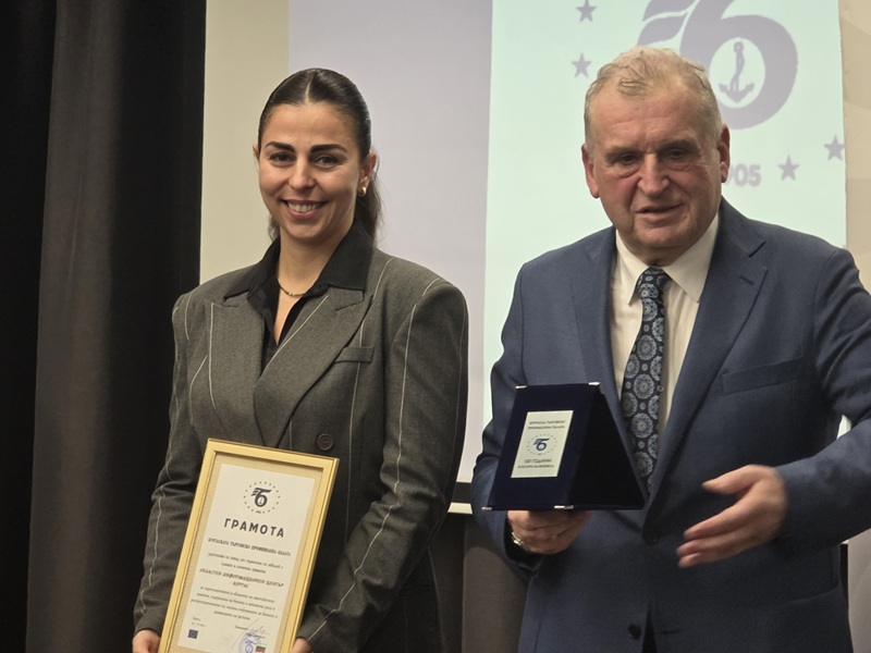 За партньорството в областта на европейските проекти, подкрепата за бизнеса и активната роля в разпространението на полезна информация за бизнеса и за развитието на региона, Палатата връчи плакет на Областен информационен център – Бургас в лицето на управителя Ана Янчева.