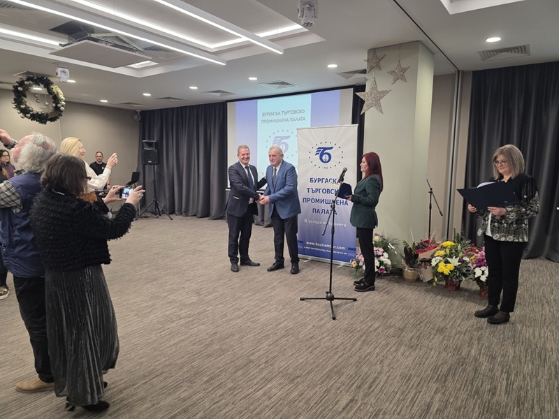 В знак на признателност за дългогодишното партньорство, подкрепата за бизнеса и активната роля в развитието на региона, Бургаската търговско-промишлена палата връчва своя юбилеен плакет на Областна администрация – Бургас. Наградата получиха областният управител Владимир Крумов и главният секретар Валентин Люцканов.