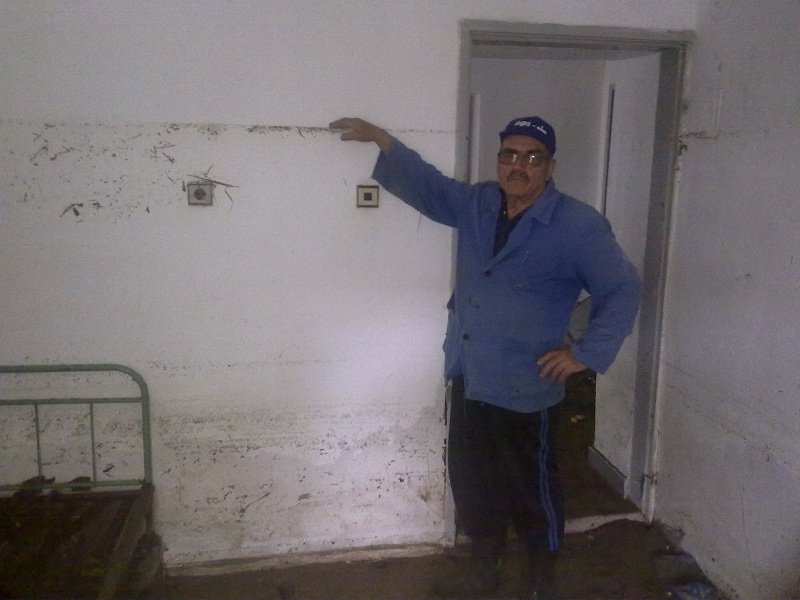 Къщи в селото са били залети от водната стихия. Пострадали показват докъде е стигнала водата в стаите.