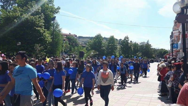 Ученици от айтоското СУ "Христо Ботев" оформиха огромно европейско знаме в празничния 24 май. Над 800 деца дефилираха облечени в синьо. „Целта ни беше да напомним, че кирилицата е една от официалните азбуки на Обединена Европа, чието председателство поемаме през 2018 година”, казаха пред Gramofona.com педагози от училището. Синята вълна заля централния площад „Свобода”.