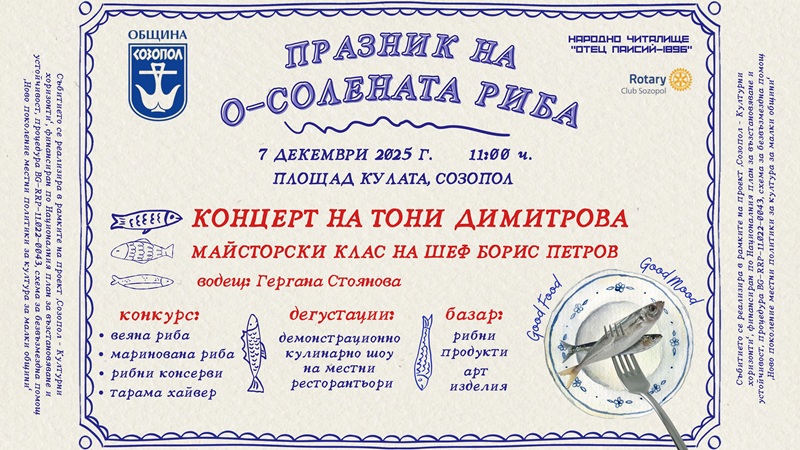 На 7 декември 2025 г. (неделя) от 11:00 часа на площад „Кулата“ в Созопол ще се проведе петото издание на Празника на О-солената риба – събитие, което събира жители, гости, рибари, кулинари и всички почитатели на морето и неговите вкусове.