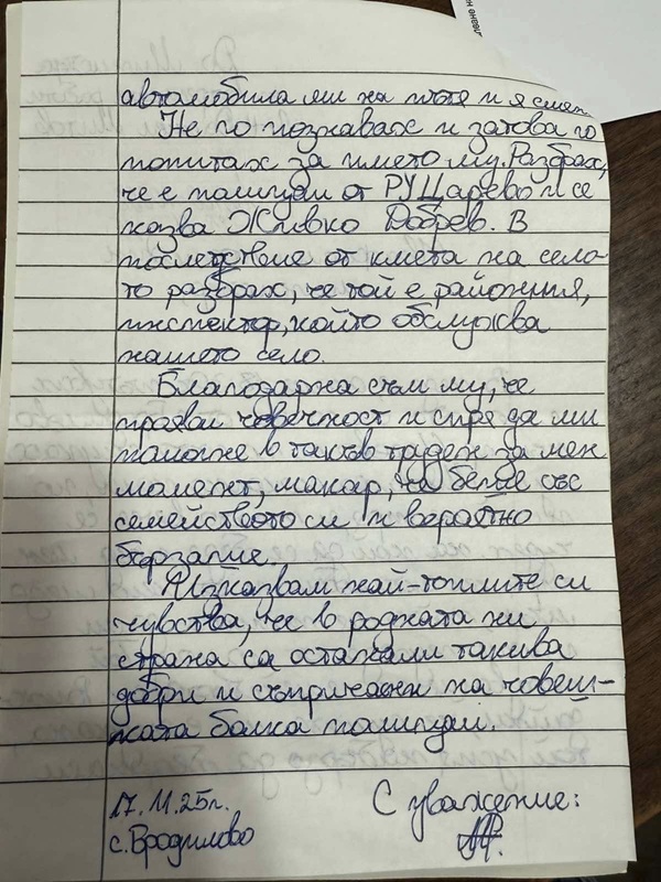 Областната дирекция на МВР-Бургас публикува емоционалното писмо на жената