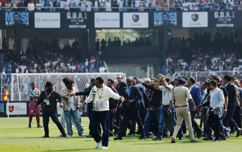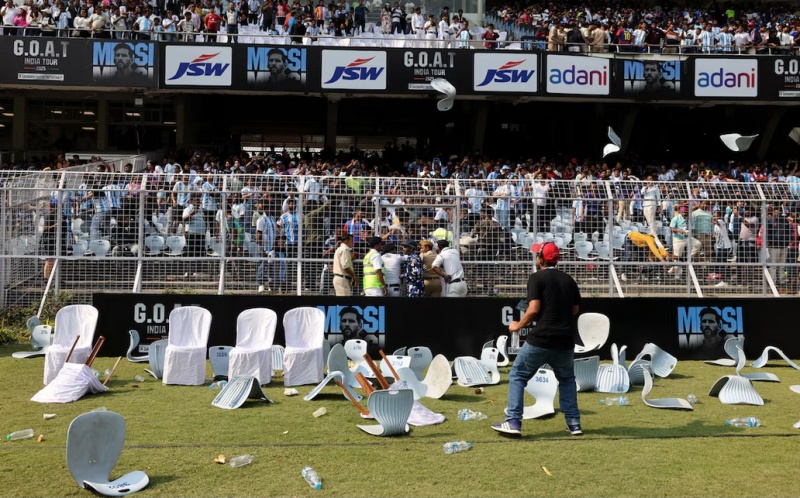 Визитата на Лионел Меси в Индия започна с истински хаос, след като негови почитатели предизвикаха безредици - хвърляха предмети, чупиха седалки и нахлуха на терена на стадион „Солт Лейк“ в Калкута, след като не успяха да зърнат аржентинската футболна легенда.