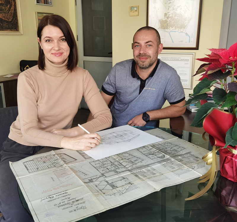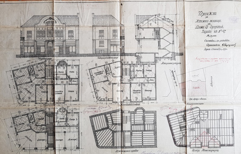 Представяме и интересен разказ на арх. Васил Дончев за историята на къщата. Една от първите проектирани сгради на арх. Стоян Гугучков е „Наемно жилище“ върху семеен имот, закупен още в края на XIX век. По неуточнени причини през 1924 г. проектът е реализиран само частично и с промени. На партерния етаж известно време се е помещавала първата археологическа сбирка в Бургас – предшественик на Археологическия музей, а там е било и архитектурното и строително бюро на арх. Гугучков.