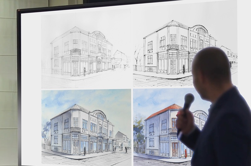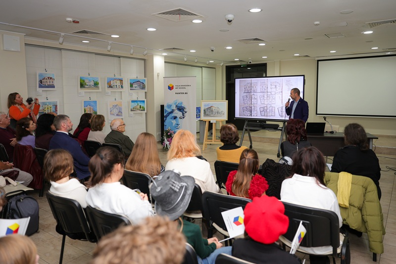 Гостите на изложбата имаха възможност да видят как един нереализиран проект „оживява“ чрез живопис, превръщайки се в мост между историята и съвременното възприятие за града.