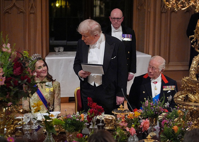 По време на държавната вечеря в замъка истинските погледи бяха насочени към първата дама Мелания Тръмп и принцесата на Уелс Кейт Мидълтън.