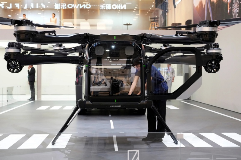 Работник подготвя летящо превозно средство от XPENG.