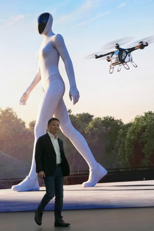 Хе Сяопън, председател и главен изпълнителен директор на XPENG, пристига на щанда на XPENG.