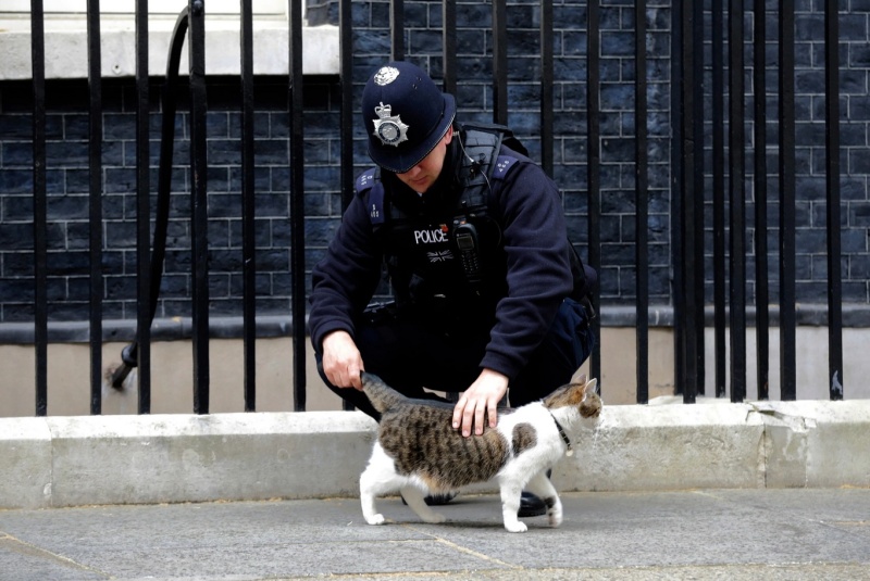 Няколко фотомонтажа се завъртяха в последните дни из социалните мрежи. На тях се вижда котаракът Лари – официалният ловец на мишки в канцеларията на британските премиери на „Даунинг стрийт“ 10 в Лондон – забъркан в няколко комични сцени. В един от фотомонтажите Лари е припаднал, а причината е, че той е покосен от новината, че може би ще трябва да съжителства с нов министър-председател. На друг фотомонтаж Лари стои гордо изправен пред офиса на британските премиери и коментарът е, че той е единственият стълб на стабилност в британската политика, след като е станал свидетел на смяната на петима премиери, и сега се заговори, че по негово време може да подаде оставка и шести британски премиер.