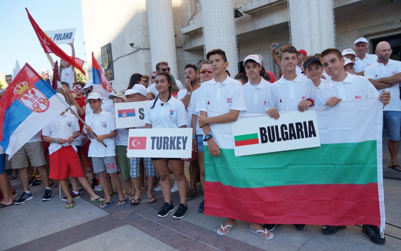 Над 280 състезатели от 45 държави от целия свят изпълниха площад „Атанас Сиреков“ в центъра на Бургас. Поводът е Европейското първенство в клас „Оптимист“, на което домакини са местният Яхт клуб „Порт Бургас“, Българската федерация по ветроходство и Община Бургас. Въпреки че е шампионат на Стария континент, правилникът разрешава в него да участват и състезатели от други континенти. Състезанието бе открито официално тази вечер, а гонките ще се проведат от 1-ви до 5-и август в акваторията на Бургаския залив.