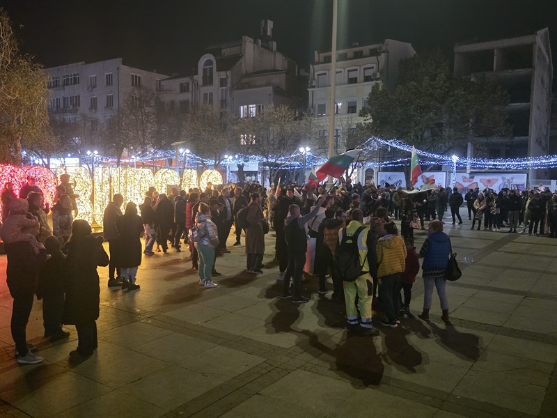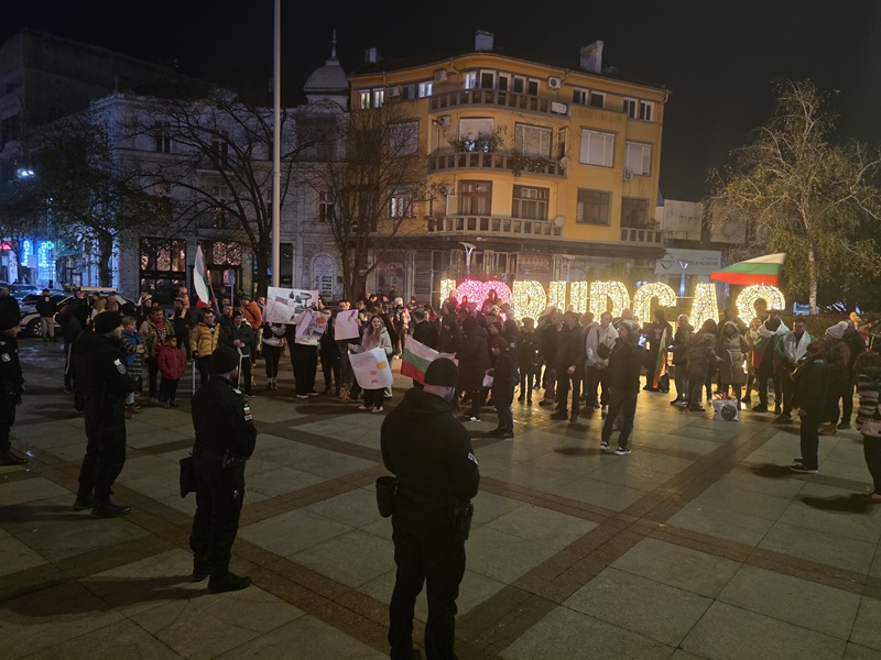 Стотина души протестираха тази вечер в Бургас. С мощни възгласи: “всеки ден ще е така до оставката” демонстрантите развяха десетки знамена пред сградата на местната администрация. Хората коментираха пред екипа ни, че са разбрали за протеста от социалните мрежи. Сред присъстващите имаше много млади хора и дори ученици.