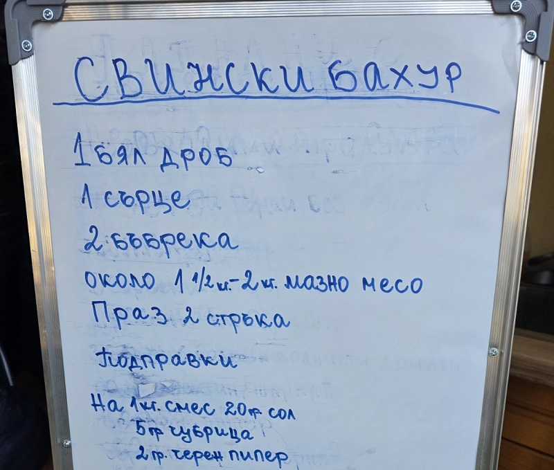 Демонстрацията се състоя в Етнокухнята на музея, а рецептата бе взета от Котленския балкан. Николов поясни, че тайните съставки за приготвянето на бахура са меракът и солта.