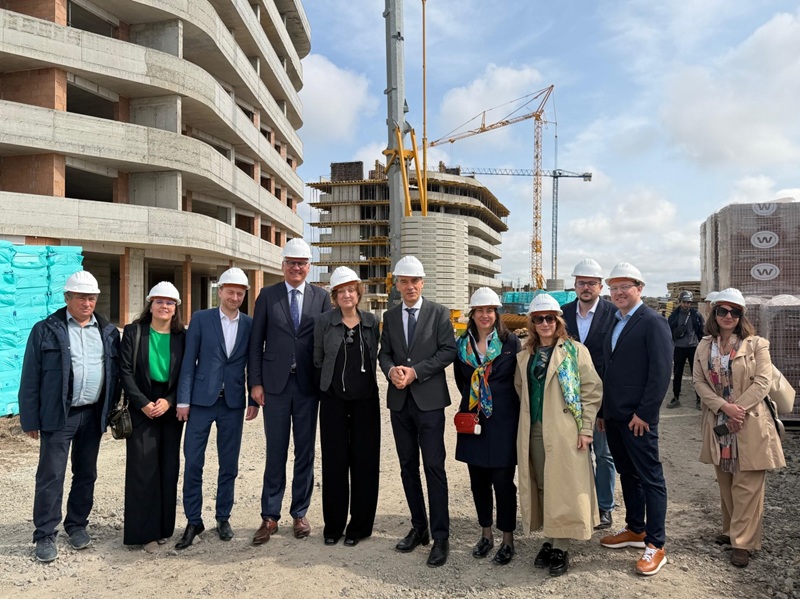Гостите дадоха висока оценка за напредъка на строителството на студентския кампус и поздравиха кмета на Бургас Димитър Николов за успешната реализация на проекта за детска болница.